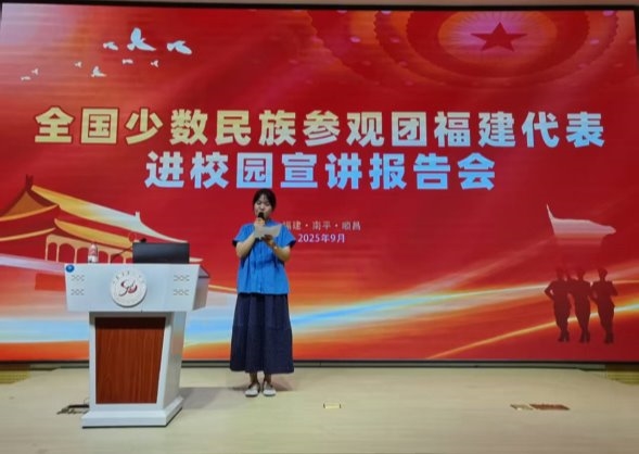 为深入学习在纪念中国人民抗日战争暨世界反法西斯战争胜利80周年大会上的重要讲话精神,充分激发广大师生的爱国情、强国志、报国行,9月21日,由福建省民族与宗教事务厅举办的全国少数民族参观团福建代表进校园宣讲报告会在南平市顺昌一中举行。