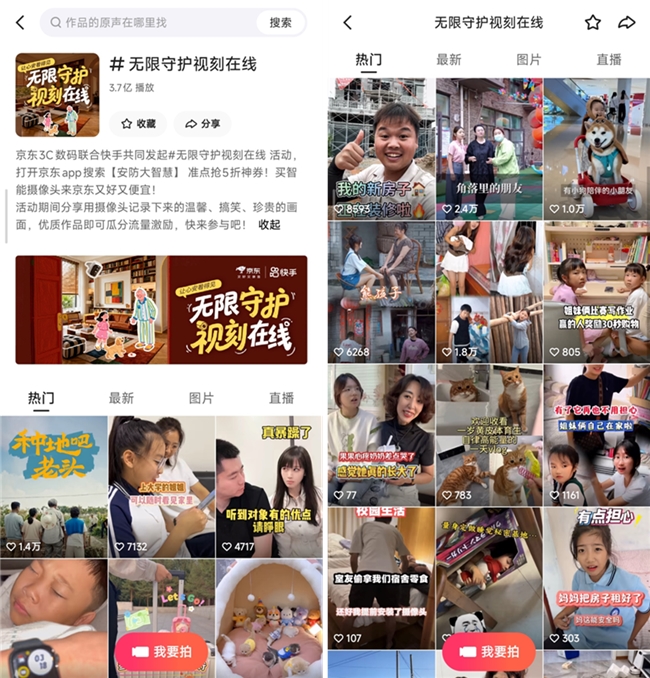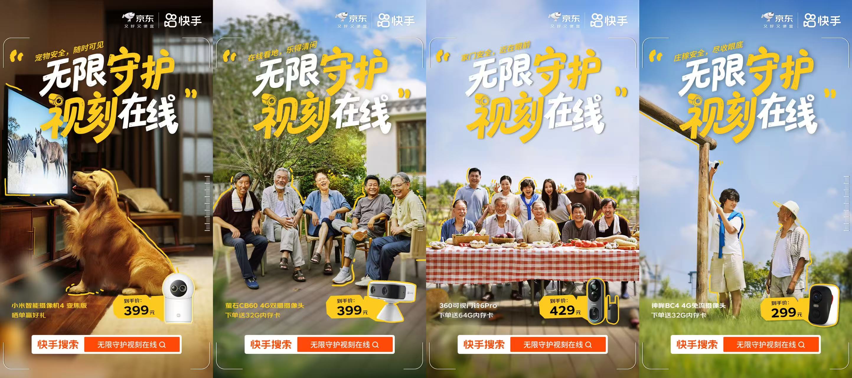 异乡游子用监控守望老家庭院,留守儿童对着监控喊爸爸妈妈,独居老人依靠监控给儿孙辈留言,铲屎官利用监控与毛孩子互动……伴随着深度媒介化社会到来,智能摄像头成为安全监护与情感传递的载体。为强化“买安防监控,上京东”的用户心智,京东3C数码与快手共同发起「无限守护视刻在线」活动,通过情感营销讲好种草新故事。