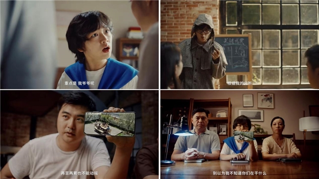 整支短片以探案形式展开,监控画面自然植入创造天然代入感,让观众感觉是发生在自己身边的事;老人的反常行为则勾起观众好奇心,避免直接说教的生硬感与沉重感;后续情节聚焦老年怀旧和家庭亲情,更易引发不同年龄层用户的共情,使智能摄像头“让心安看得见”的功能价值得到展现,也帮助京东在消费者心中塑造出有温度的品牌形象。