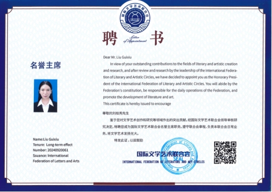 经上级领导人认可,为大师审批了一部影响国际的中国传统文化电影:《东方奇人刘桂秀》。这部电影是由中国和东南亚国家合作完成,会以中国梦为主题的“一带一路”,将中国的五千年传统文化之精髓及人文去影响整个世界。